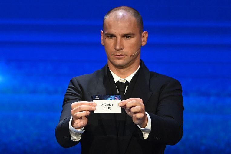 Dick Sintenie 27 augustus 2021 0956 De Servische voetballer Branislav Ivanovic laat de naam Ajax zien tijdens de loting voor de Champions League in Istanboel. Ajax weet donderdagavond wie de tegenstanders worden in de poulefase van de UEFA Champions League.